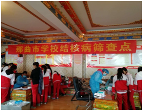 在那曲市“三病”综合防治领导小组办公室的协调下,由那曲市疾控中心联合那曲市人民医院、市妇幼保健院、市藏医院,11个县(区)疾控中心的培训人员27人参与,于2018年6月26日在那曲市第二高级中学对全校师生进行了结核病筛查,筛查对象包括初一初二两个年级及全校的教职工、后勤人员,总共应筛查人数为711人,其中有禁忌症、过敏体质、孕妇、及已诊断为结核病的121人(不适宜做PPD试验的接种要求),PPD实际接种人数为590人,接种率达到了82.98%。接种后72小时(2018年7月1日)后,PPD结果阳性37人,阳性者7月2日拍片,结果显示:疑似肺结核1人。