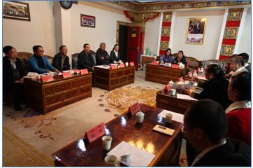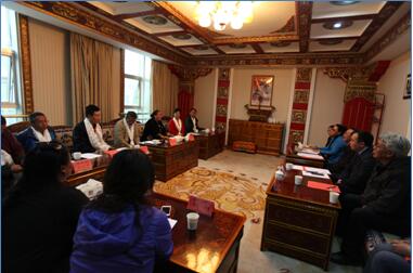 会上卫计委王亚蔺书记简要介绍了我区卫生工作有关情况,同时感谢班禅大师母亲及阿妈仓医疗队专家们的无私奉献精神,专家们精湛的医术、高尚的医德、良好的疗效,赢得了百姓的信任和赞扬,充分体现了桑吉卓玛女士和专家们对西藏各族人民群众的厚爱。王云亭主任再次感谢班禅大师和桑吉卓玛女士及各位专家长期以来对西藏卫生计生工作的关注和支持,并表示将对专家们的意见和建议认真研究,继续支持医疗队在藏工作。